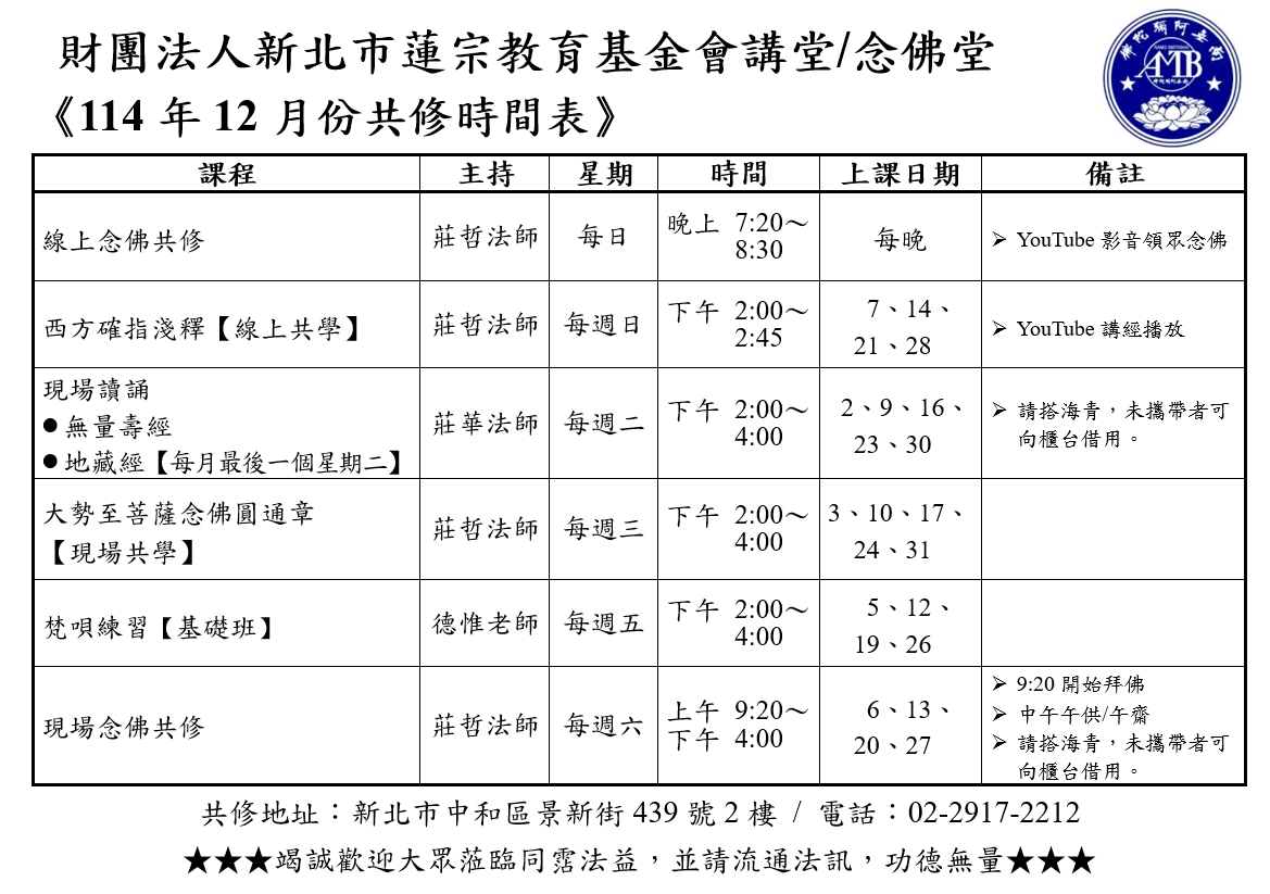 114年12月份共修訊息