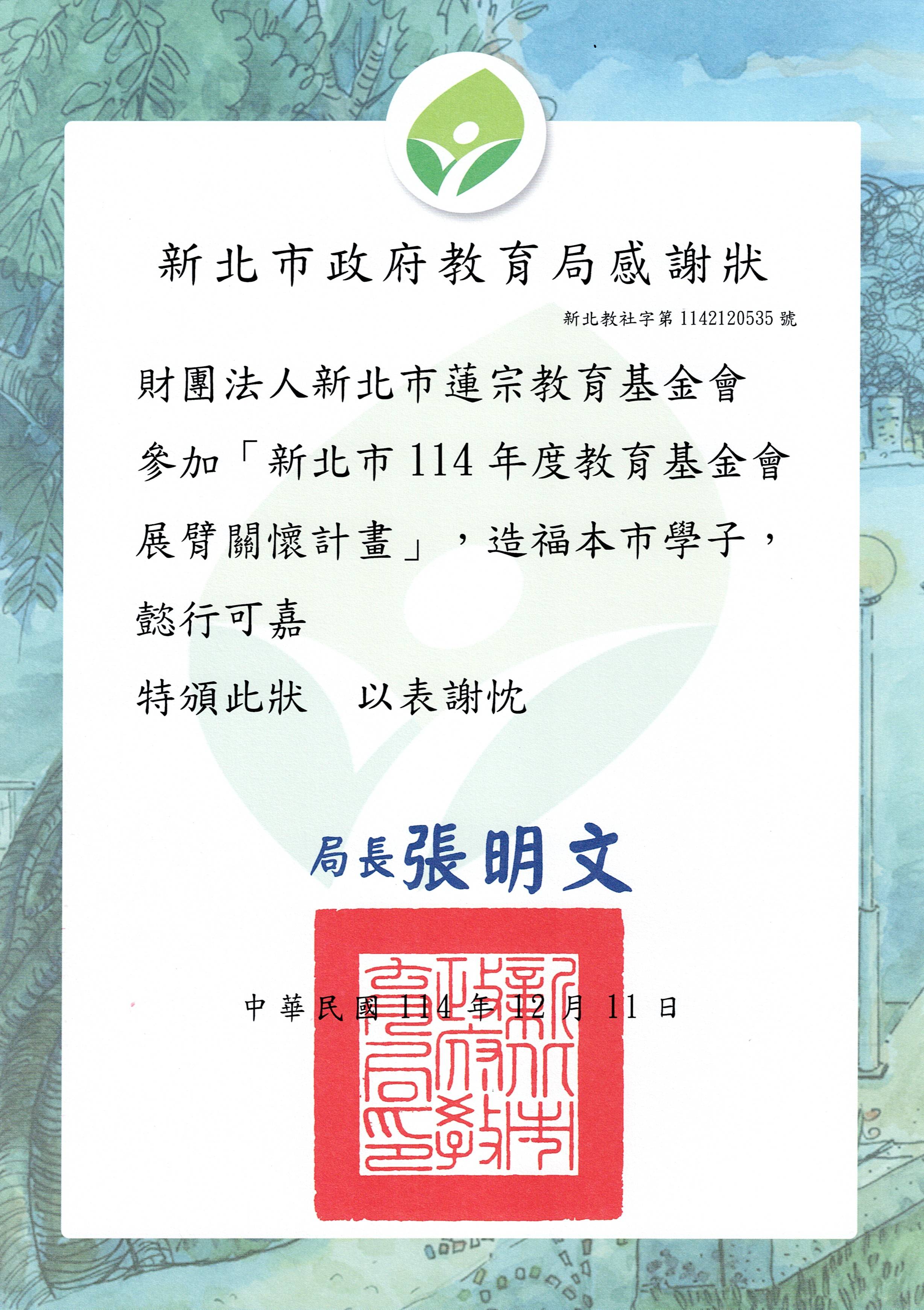 新北市114年教育基金會展臂關懷計畫感謝儀式